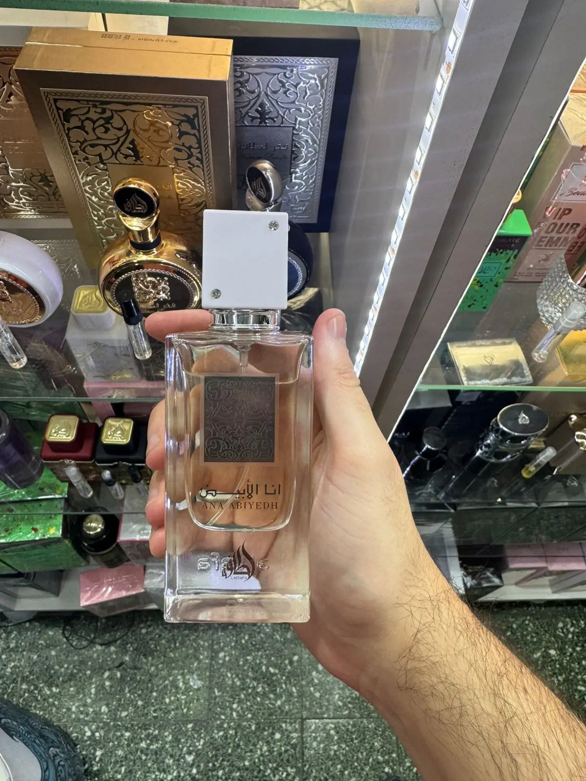 Perfume almizclado y atalcado, con notas de bergamota, pera y ambar.