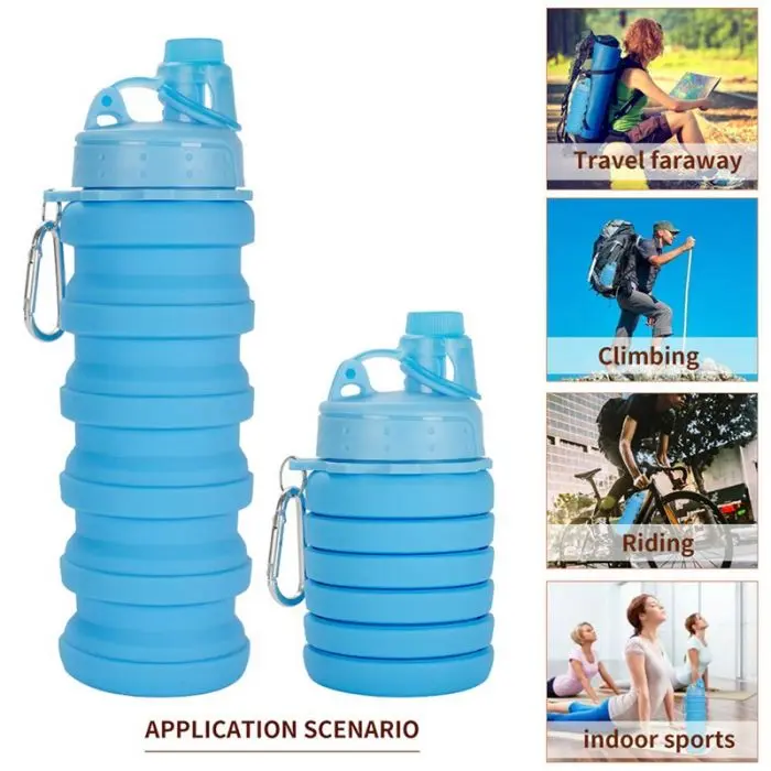 Botella de agua plegable de grado alimenticio para exteriores, botella de agua deportiva plegable de 550ml