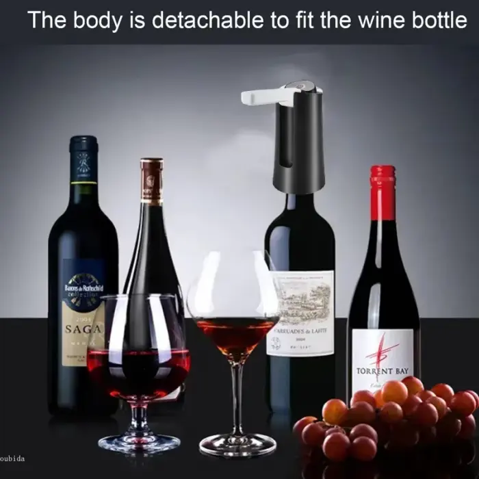 Batería recargable USB-Batería de iones de litio incorporada, una vez cargada completamente puede airear 100 botellas de vino tinto de 750ml. Es más fácil de usar y ecológico que los Aireadores de Vino eléctricos de otras marcas que funcionan con baterías de carbono-zinc.