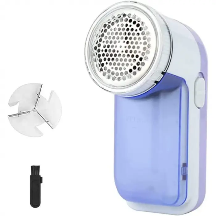 El eliminador de pelusas de tela está diseñado con una cubierta protectora de plástico para cubrir la hoja y la malla de acero inoxidable, evitando daños innecesarios en su tela.