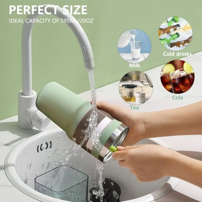 Tiempo de conservación de la bebida fría: 6 h Tiempo de conservación de la bebida caliente: 2 h Diámetro: 9 cm Altura: 18,5 cm Material del recipiente: Acero inoxidable/Plástico Incluye tapa: Sí SURTIDO A DISPONIBILIDAD
